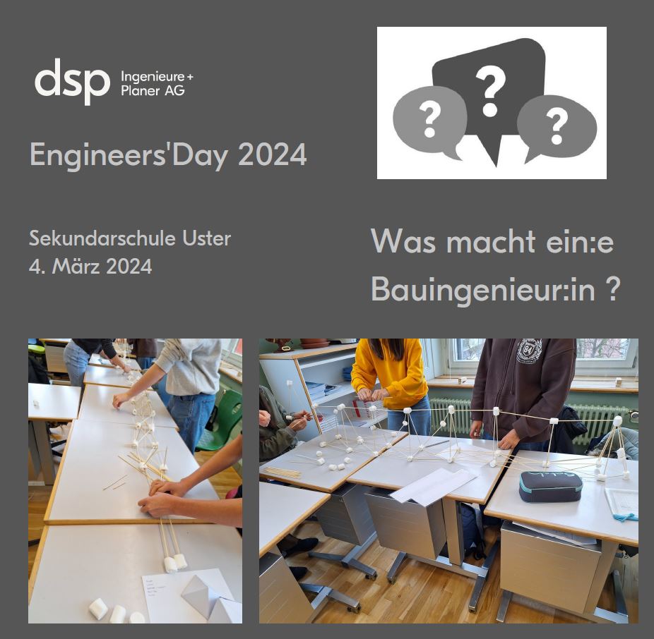 🌟 Am gestrigen Welt-Engineers’Day hatten wir die Gelegenheit, die Tätigkeiten des Ingenieurberufs in den Fokus zu rücken und die Faszination dieses Berufs an die SchülerInnen der Sekundarschule Uster weiterzugeben. Mit einer informativen Präsentation wurde den SchülerInnen einen Einblick in die spannende Welt des Ingenieurwesens vermittelt. Dabei stand das Ziel im Vordergrund, den SchülerInnen eine Idee über die vielfältigen Möglichkeiten und Herausforderungen als ZeichnerIn, IngenieurIn oder BauleiterIn zu zeigen. 🚀