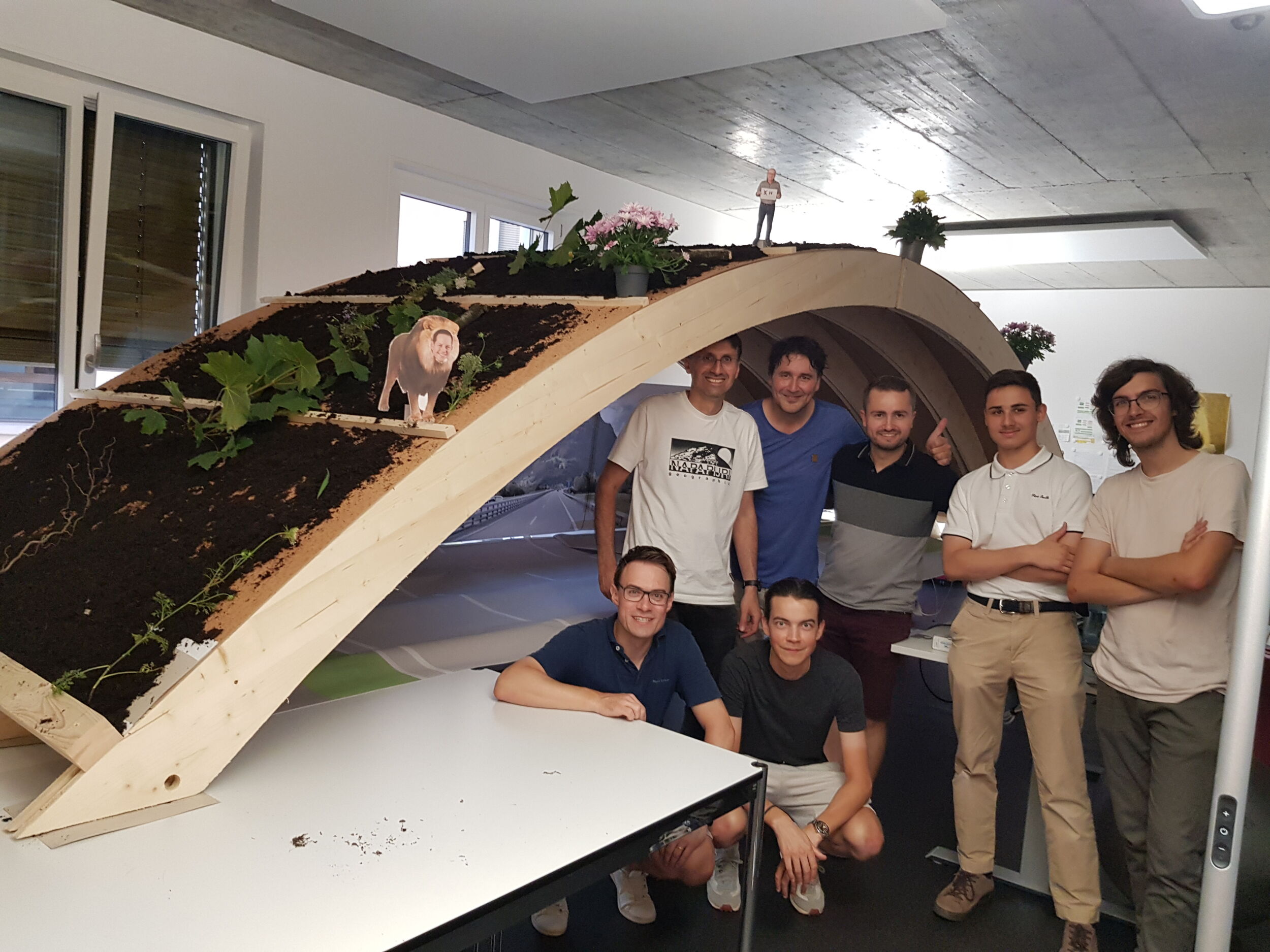 Die Bauabläufe wurden neben dem 3D-Modell im IFC-Format auch in echt durchgespielt. Zusätzlich wurde ein 1:10 Modell aus Holz mit Erdüberschüttung in unserem Büro in Uster erstellt.