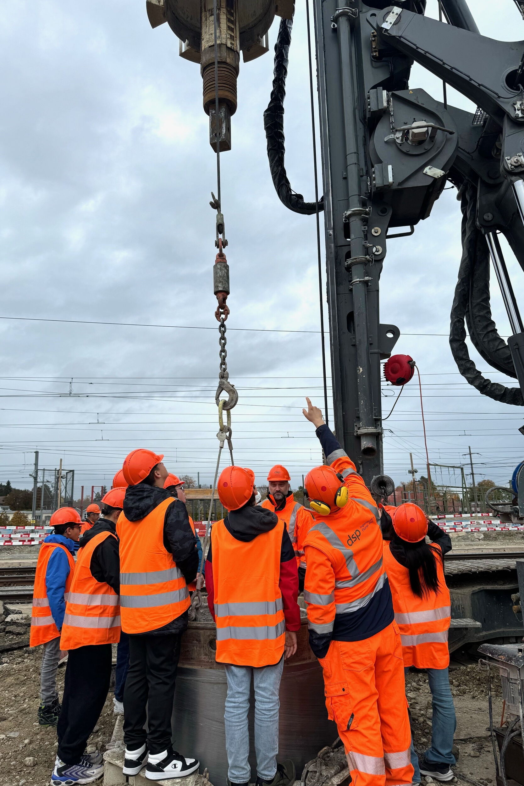 Der Höhepunkt des Tages war zweifellos der Rundgang auf unserer Baustelle "Querung Grüze" in Winterthur. Die Kinder konnten hautnah erleben, wie echte Bauprojekte umgesetzt werden, und dabei wertvolle Eindrücke sammeln.