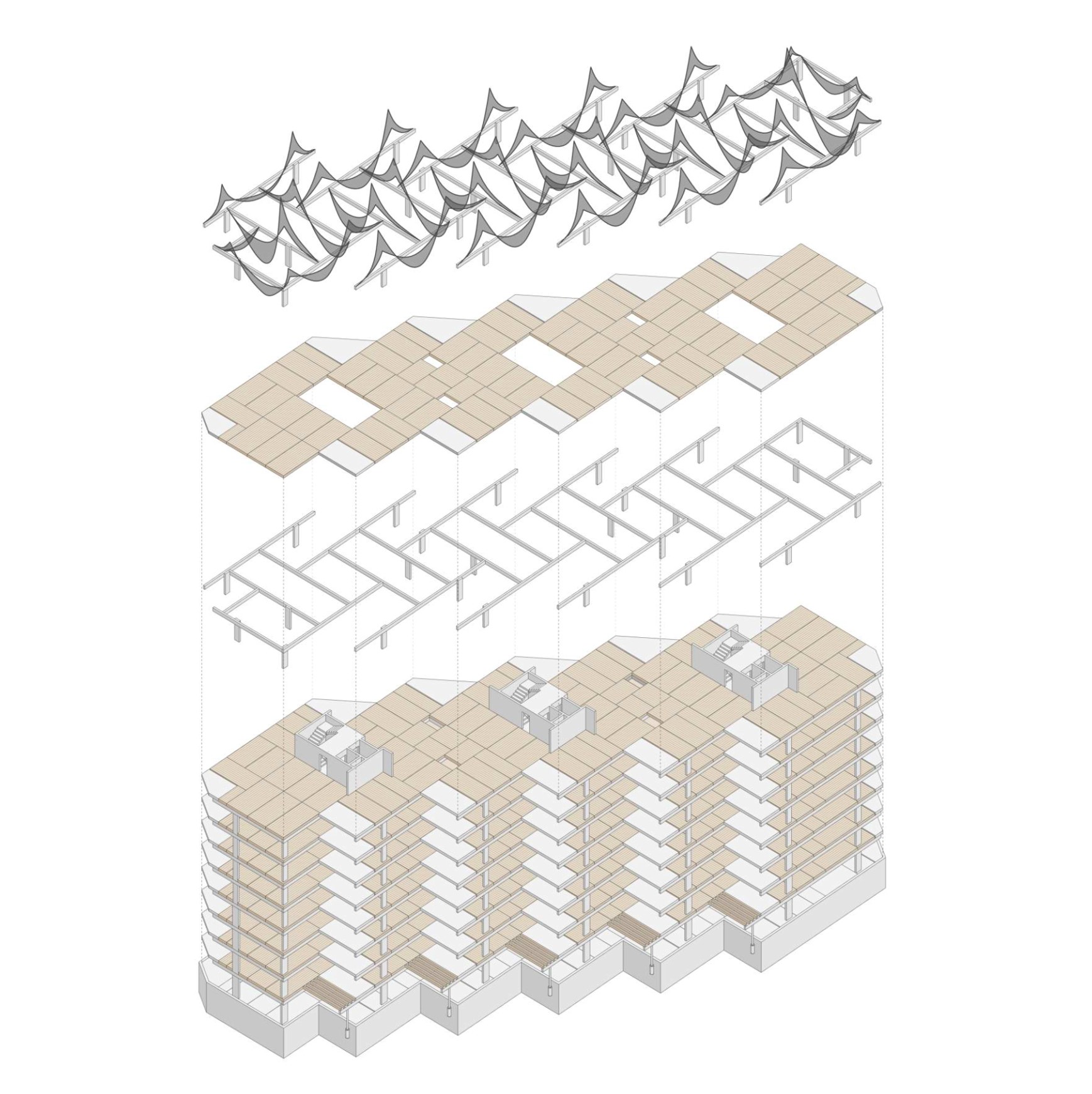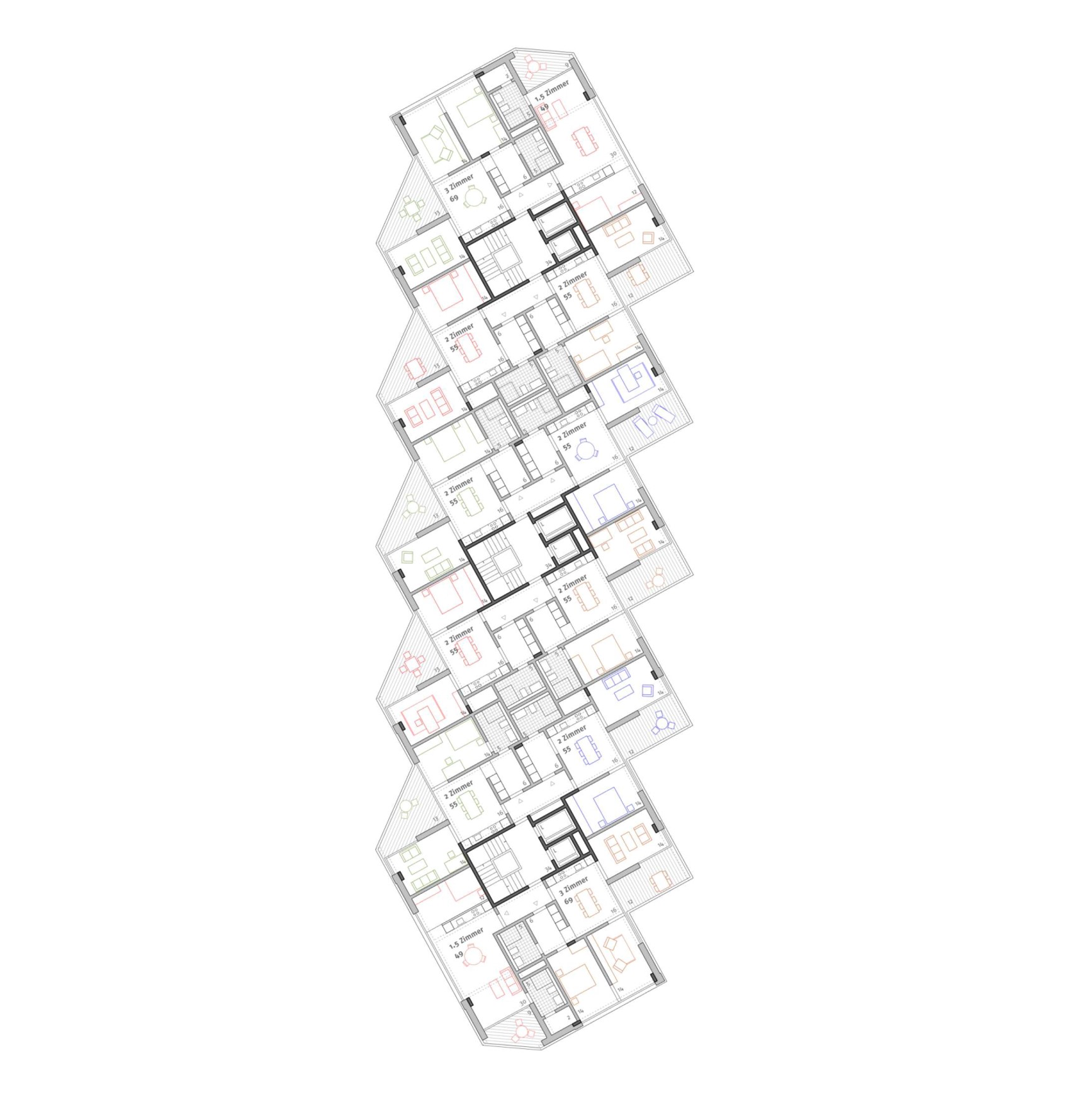 In der zehngeschossigen Wohnsiedlung in Leutschenbach Mitte entstehen 113 Alterswohnungen für die Stiftung Alterswohnungen der Stadt Zürich (SAW). Der Entwurf «Le Petit Prince» des Teams um Liechti Graf Zumsteg Architekten mit dsp als Tragwerksplanende setzte sich gegen mehr als 40 weitere Wettbewerbseingaben durch. Das kraftvoll in Erscheinung tretende Tragwerk besteht aus einem Skelett aus Stützen und Trägern. Als Hebeltragwerk zusammenwirkende, vorfabrizierte Betonträger werden «windmühlenartig» um die drei Erschließungskerne angeordnet. Als flächiges Element liegt eine Brettstapeldecke aus Holz auf den Betonunterzügen auf.