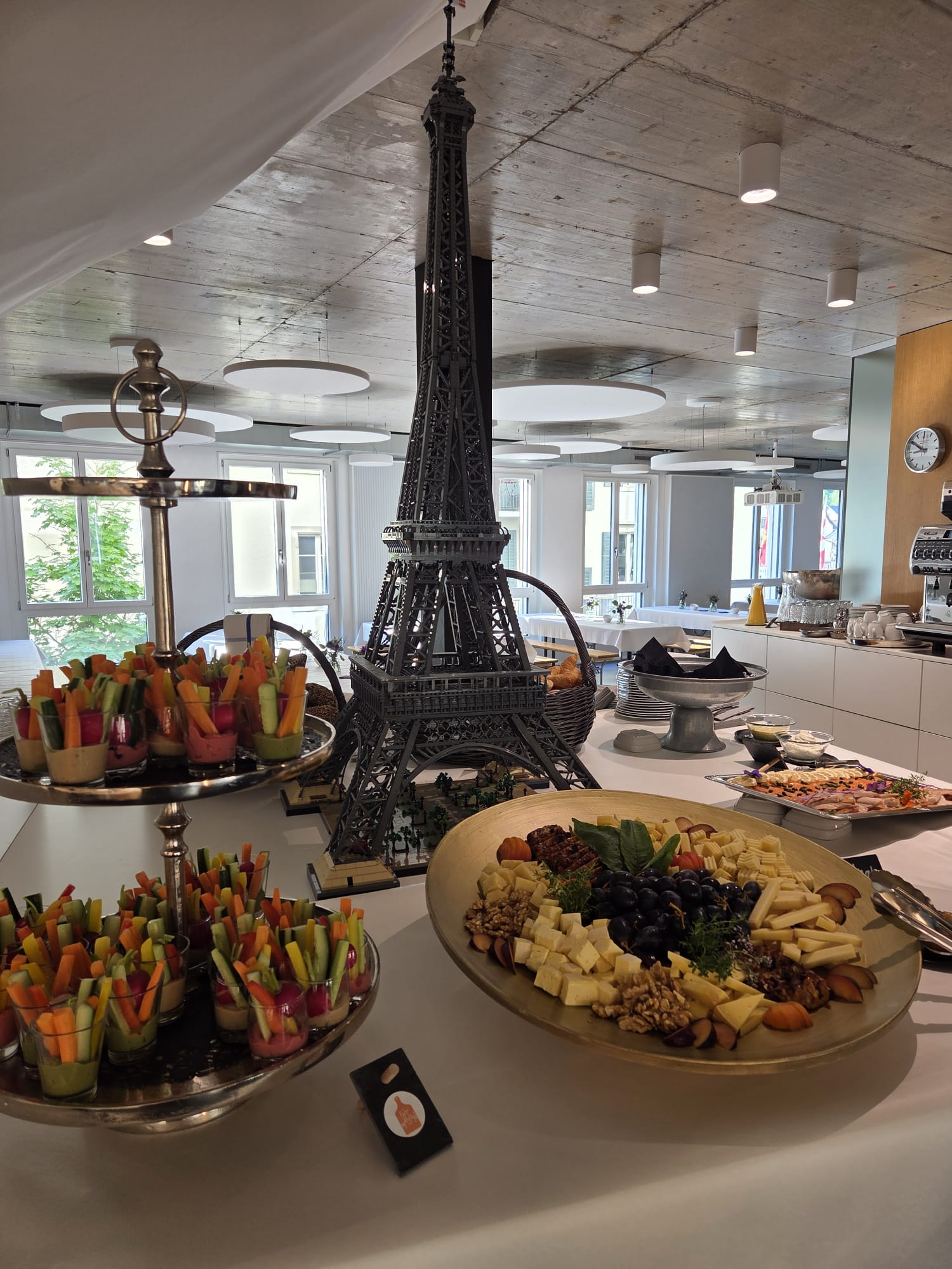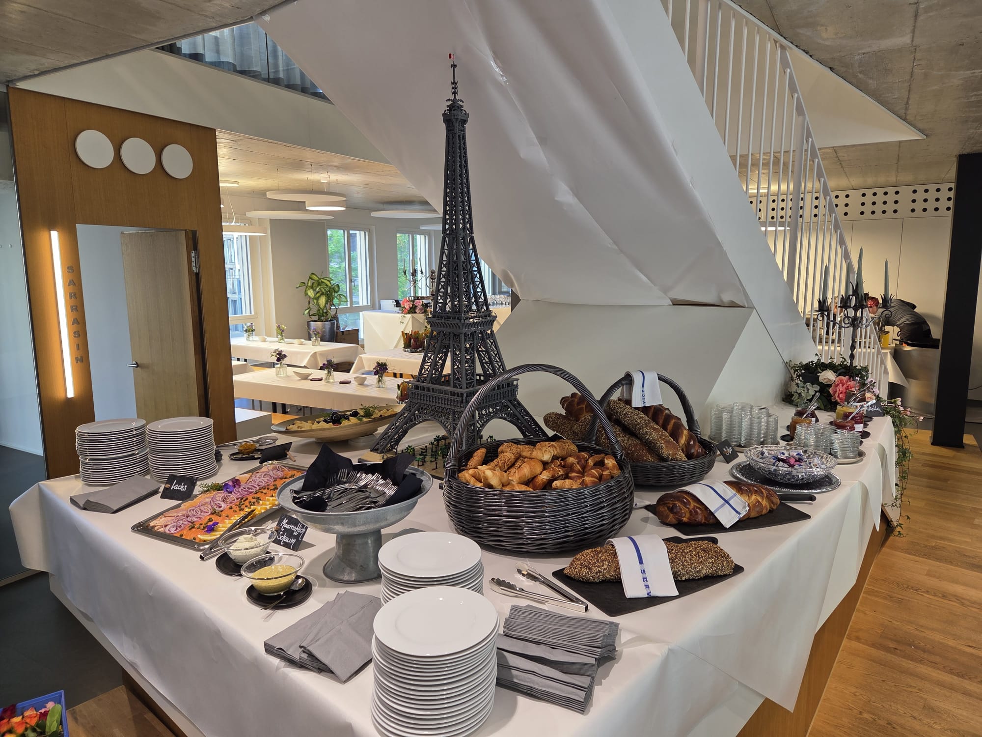 Mit einem vielfältigen und liebevoll angerichteten Brunchbuffet wurden wir verwöhnt. Neben köstlichen Fleisch-, Fisch- und Käseplatten gab es eine breite Auswahl an Backwaren, Müesli und an der Live-Kochstation wurden Rösti, Speck und Spiegeleier frisch zubereitet 🍳🧀🥐.