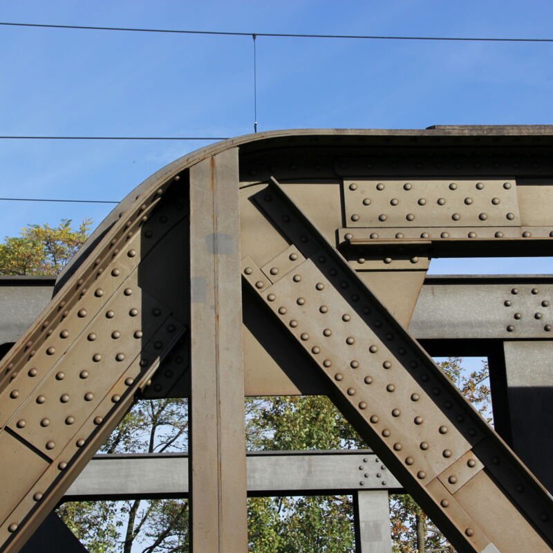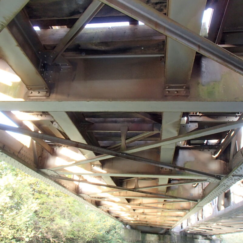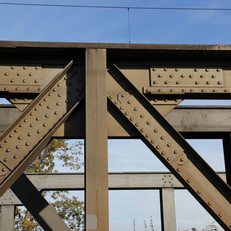 Die Aabach-Brücke rechts wurde aus Flussstahl erstellt, ein Vorgänger des modernen Baustahls mit einem deutlich höheren Kohlenstoffgehalt. Zudem sind sämtliche Elemente der Fachwerkträger als genietete Blechträger ausgebildet. Diese Eigenschaften, sowie die bisherige und zukünftige Belastung wurden bei der Überprüfung der Brücke berücksichtigt. Während ein statischer Nachweis (Grenzzustand Typ 2) eine ausreichende Sicherheit der Haupttragelemente sowie der Anschlüsse ergab, wies eine Überprüfung der Restnutzungsdauer verschiedene Defizite auf.
