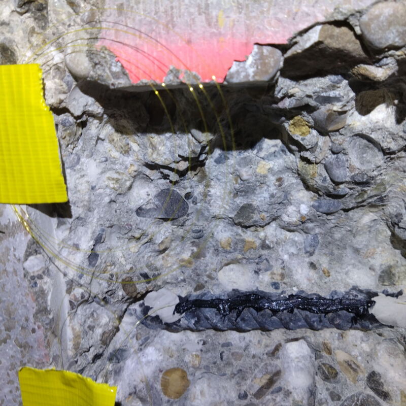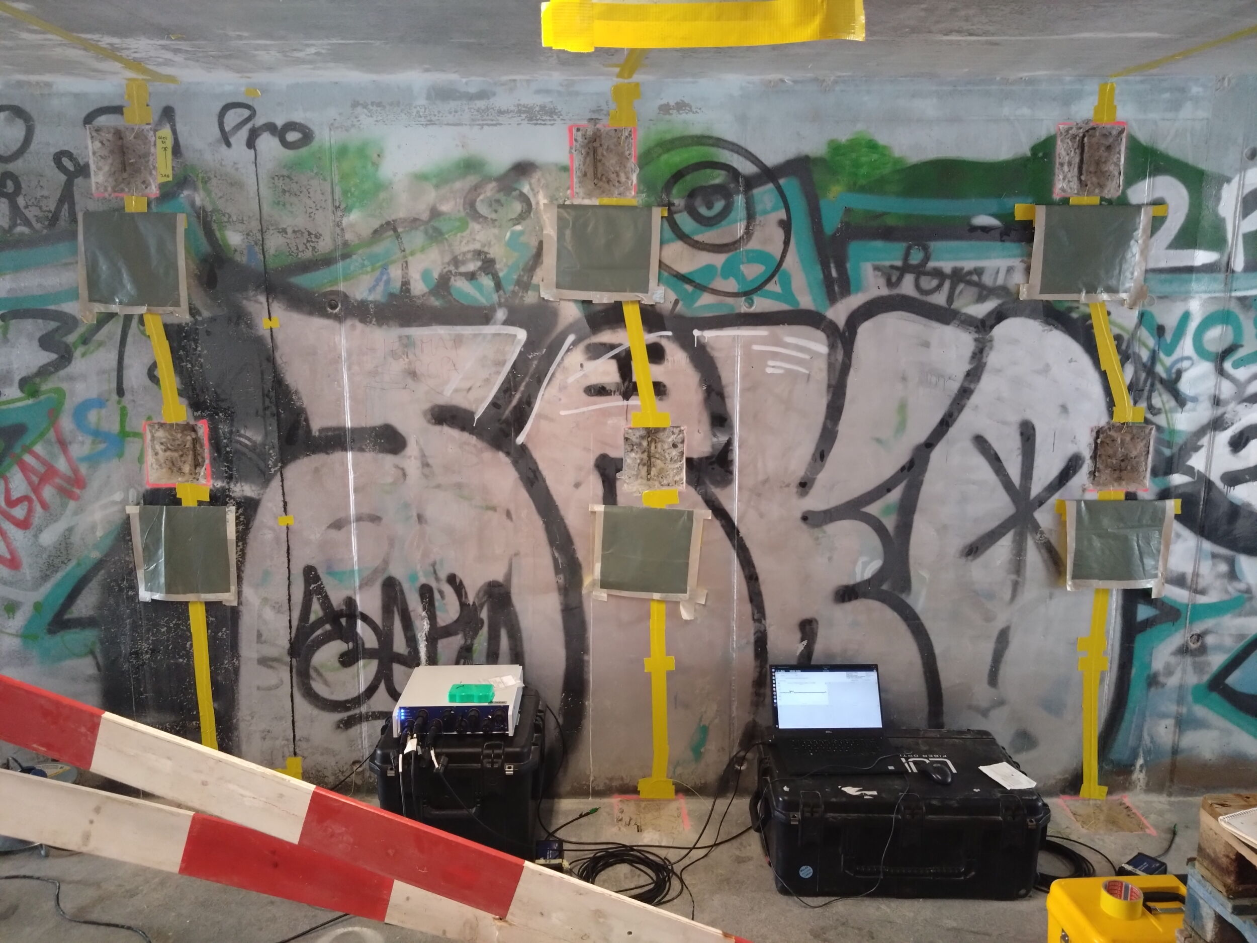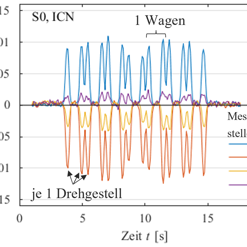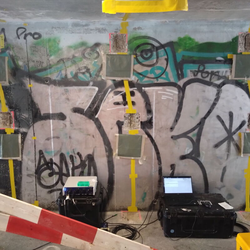 Die Messungen wurden mittels eines faseroptischen Dehnungsmesssystems der ETH Zürich durchgeführt, wozu die Bewehrung an verschiedenen Stellen über eine kurze Länge freigelegt und mit Glasfasern ausgestattet wurde. Ihre Dehnung konnte so für die Durchfahrt verschiedener Zugkompositionen bestimmt werden.