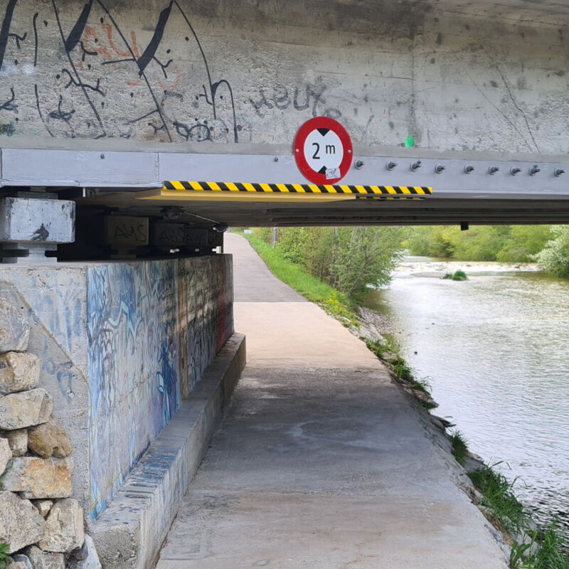 Im Rahmen einer Expertise zur Schubtragsicherheit wurde aufgrund der spezifischen Spanngliedverankerung des Spannsystems eine unzureichende Auflagersicherung im spitzen Eck des schief gelagerten Überbaus festgestellt.