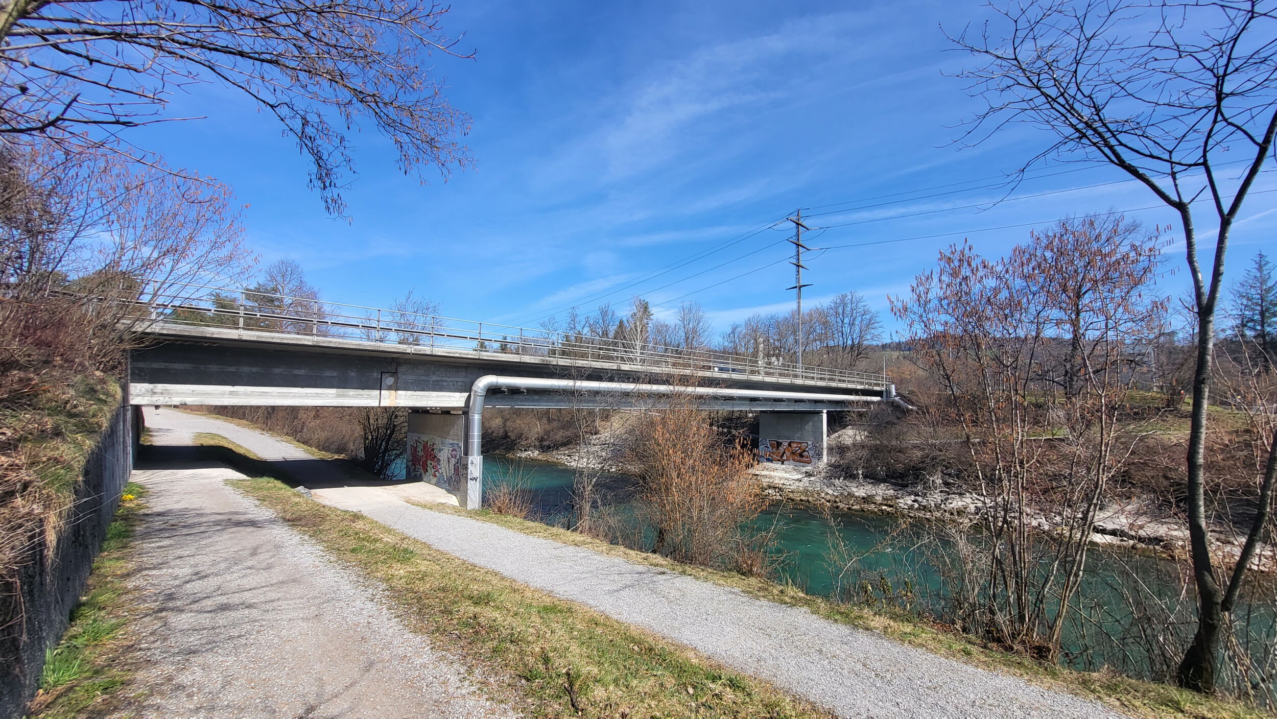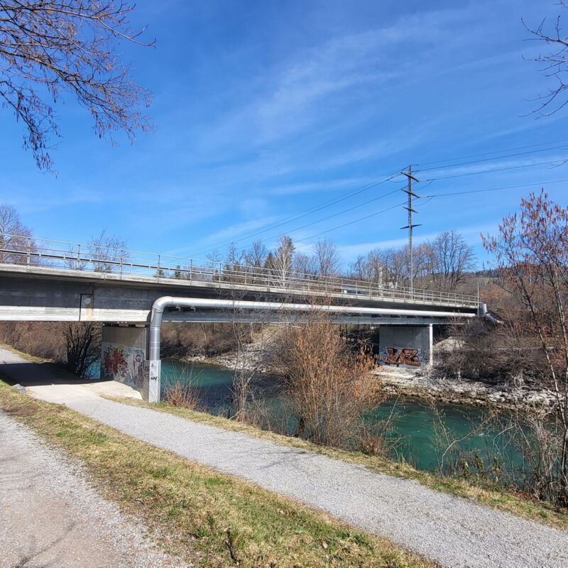 Zur Verbesserung der Situation für den Langsamverkehr wird die unterwasserseitige Konsole mit dem Bankett abgebrochen und durch einen neuen Radweg ersetzt. Dieser wird als Stahlkonstruktion ausgebildet, welche im Querschnitt aus zwei H-Trägern besteht und sich auf dem Unterbau der bestehenden Brücke abstützt.