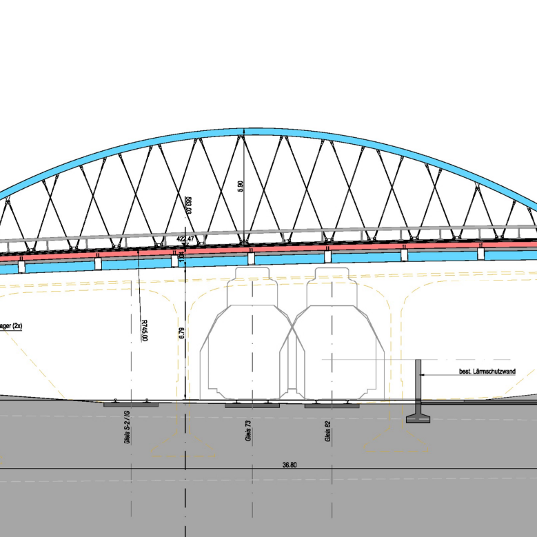 - Kenndaten Netzwerk-Bogenbrücke, Länge ca. 37 m