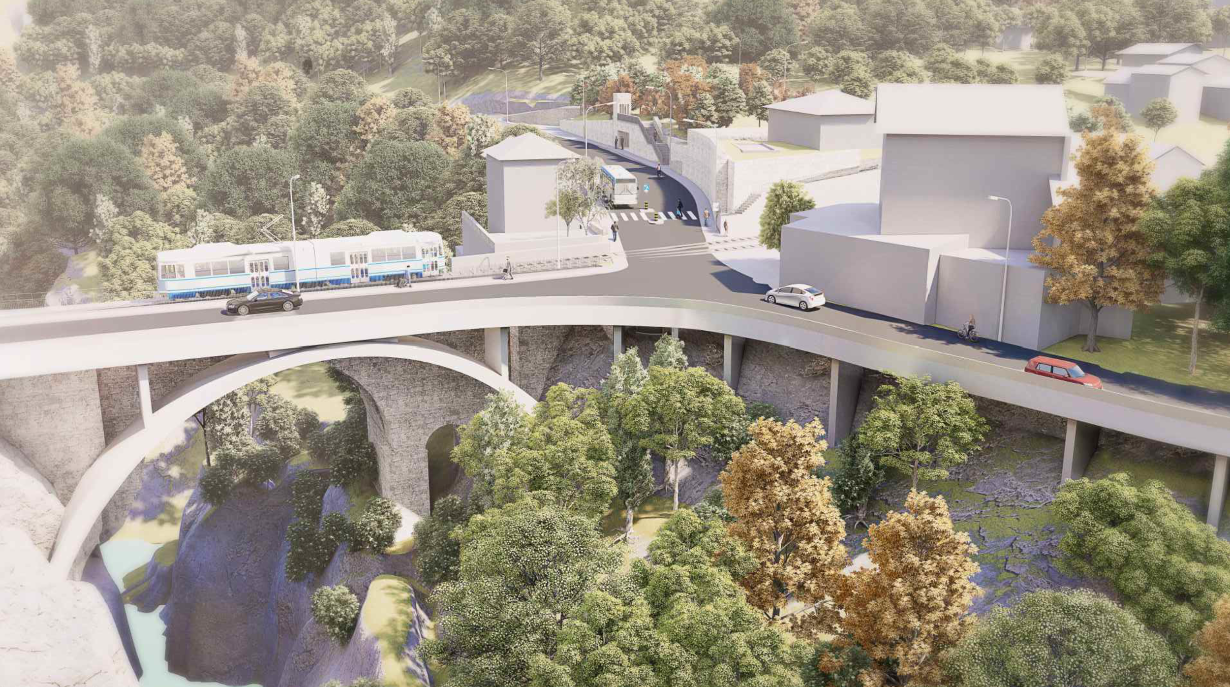 Gemischte Nutzung für Strassen- und Bahnverkehr Verbreiterung für dritte Strassenspur: Stahlbetonkonstruktion