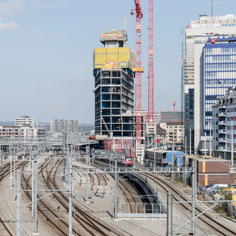 Gegründet ist der Franklinturm mit einer kombinierten Pfahl-Plattengründung (KPP); so werden die Lasten effizient in den Baugrund eingeleitet.