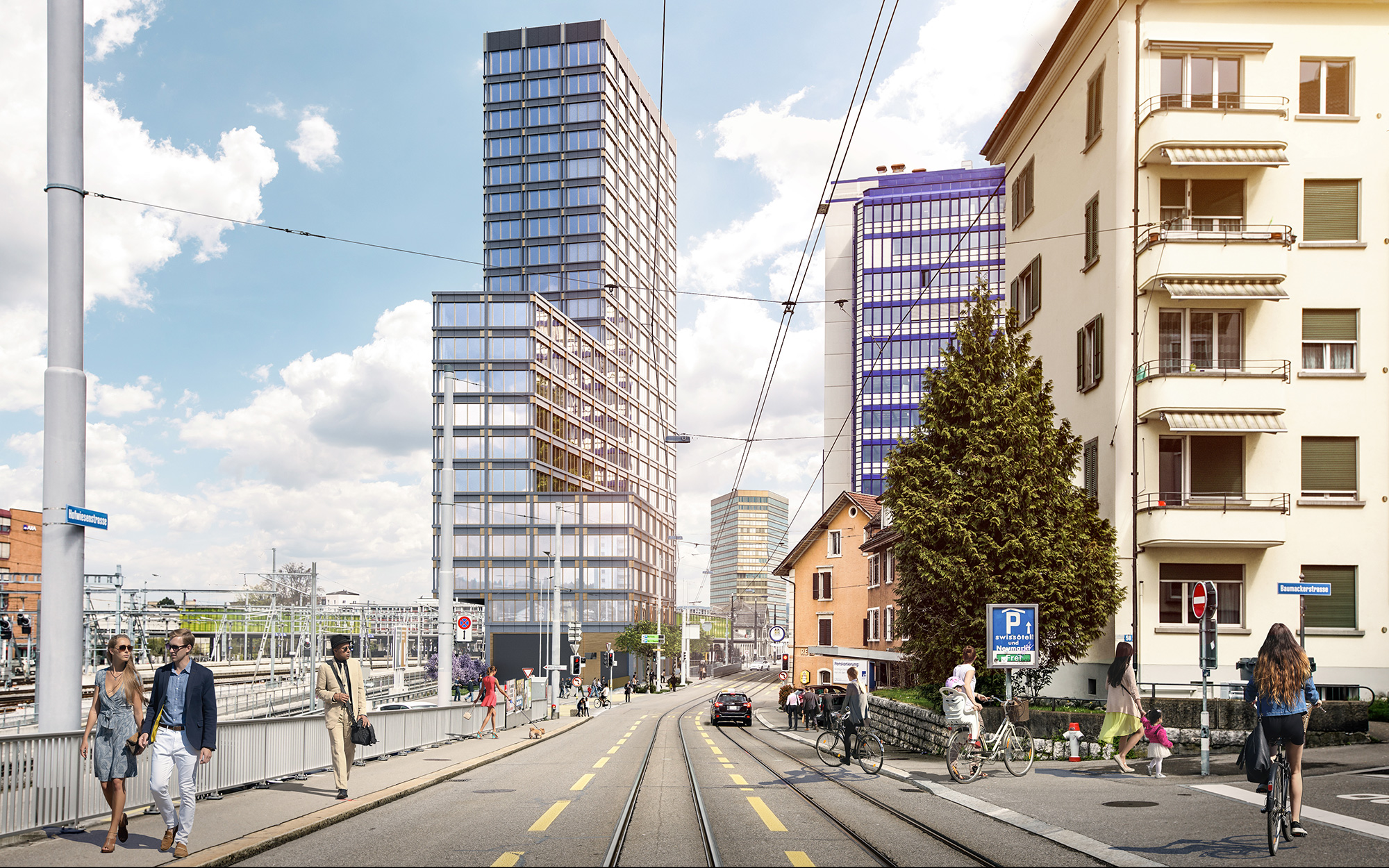 Das Baufeld Südwest Mitte beim Bahnhof Zürich-Oerlikon zeichnet sich städtebaulich durch seine prominente Lage aus. Es bildet den baulichen Abschluss des Bahnhofplatzes, markiert die Ein- und Ausgangssituation des Bahnhofs Oerlikon und übernimmt nicht zuletzt als markantes Gesicht des alten Stadtteils eine wichtige, übergeordnete Scharnierfunktion zwischen den beiden, durch die Gleisanlagen geteilten Stadtteile.