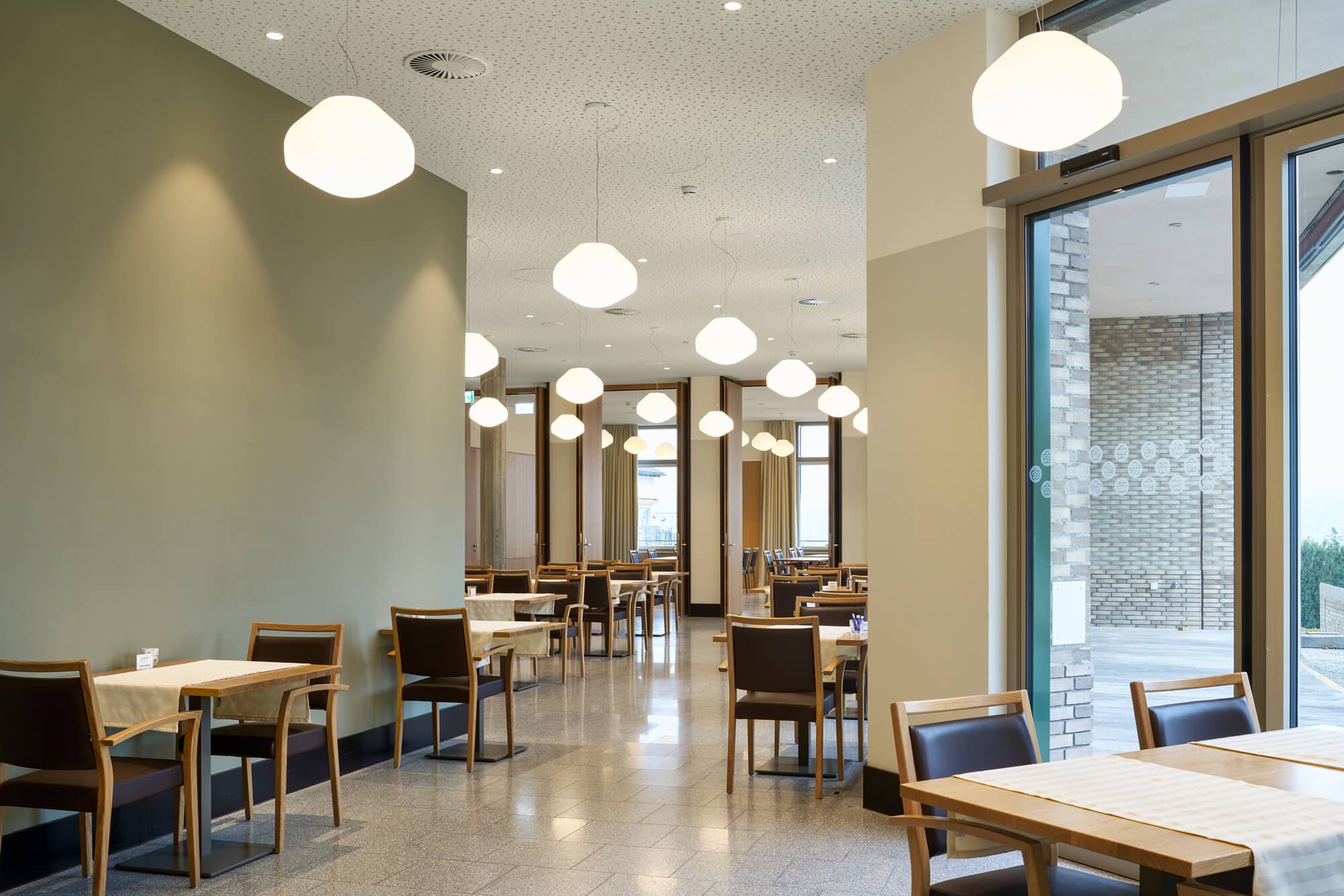 Durch einen städtebaulich prägnanten Bau wird dem Pflegeheim Abegg Huus eine neue Identität und Ausstrahlungskraft verliehen. Topografie, Aussicht und Strassenkreuzung werden zu den bestimmenden Elementen des Entwurfs. Z-förmig spannt das neue Haus zwei räumlich gefasste Aussenbereiche auf - einem gut besonnten, verkehrsfreien und direkt an das Restaurant und an den Saal angebundenen Aussenbereich mit Pflanzbeeten und Pergola und einem intimen, entsprechend den spezifischen Ansprüchen bepflanzten Dementgarten - und vermittelt zwischen den beiden unterschiedlichen Strassenräumen. Durch die abgewinkelte Gebäudefigur wird die Gesamtdimension vielschichtig und mehrdeutig lesbar. Diese Formensprache findet sich auch an den mehrfach geknickten Gebäudeenden wieder.