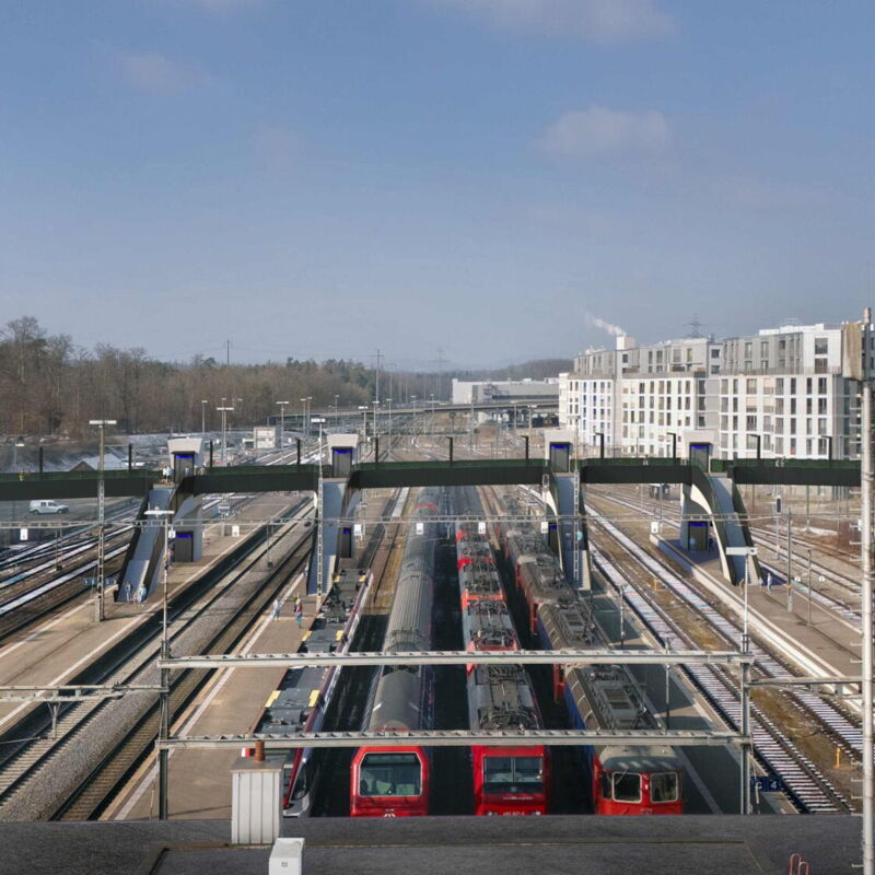 Der öffentliche Gestaltungsplan Bülach Nord sieht für Fussgänger und Radfahrer eine neue Verbindung der geplanten Wohn- und Arbeitsplatzgebiete mit dem Naherholungsgebiet vor. Die zu erstellende Passerelle quert das Gleisfeld beim Bahnhof Bülach, wobei durch Perronabgänge in Form von Treppen und Liften ein neuer Direktzugang zu den Perrons geschaffen werden kann.