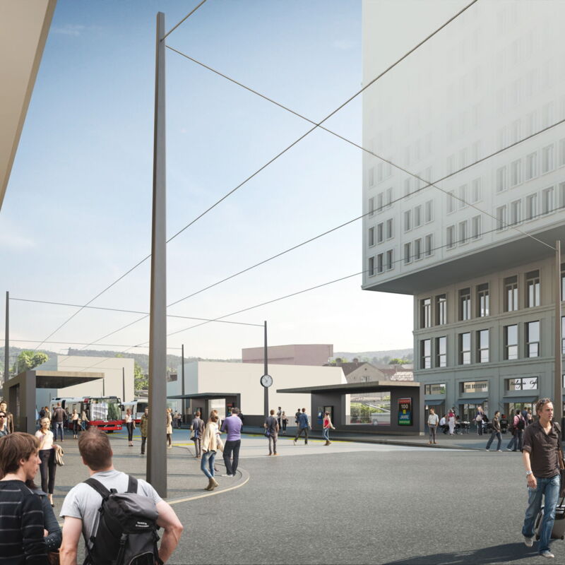 Auch wird der Knoten Talackerstrasse umgestaltet und eine Bushaltestelle in der Sulzerallee erstellt. Die Anordnung der Elemente wurde anhand von verkehrlichen und städtebaulichen Überlegungen optimiert.