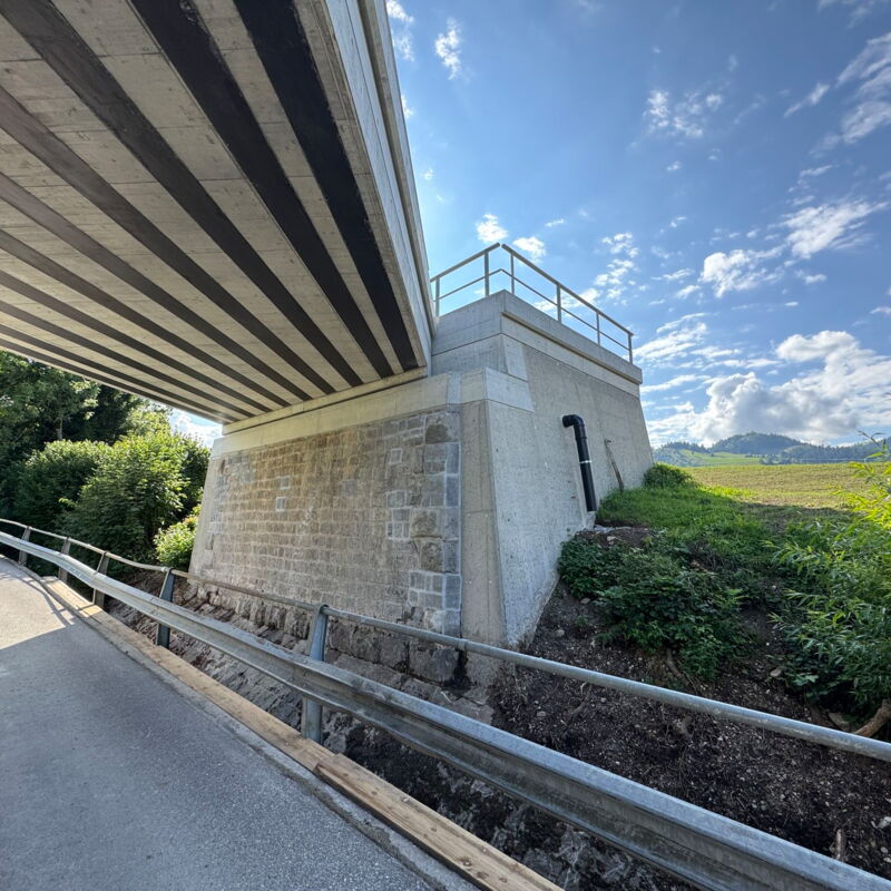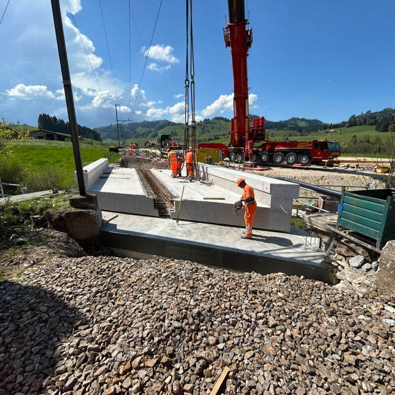 Auf der rund 10 Kilometer langen Strecke von Wiggen nach Schüpfheim wurde die Fahrbahn komplett erneuert. Dies umfasste die Erneuerung der Schienen/Schwellen und des Schotterbettes. Im Fachbereich Kunstbauten, für dessen Ausführungsplanung dsp Ingenieure + Planer AG im Rahmen des GU+ Auftrages zuständig war, wurden die Überbauten von 5 Brücken komplett ersetzt, eine Brücke wurde verstärkt und saniert, diverse Bachdurchlässe erneuert und zahlreiche Brückenrandborde angepasst. Das Planerteam war für die Phase 51 - 53 inkl. Bauleitung verantwortlich.