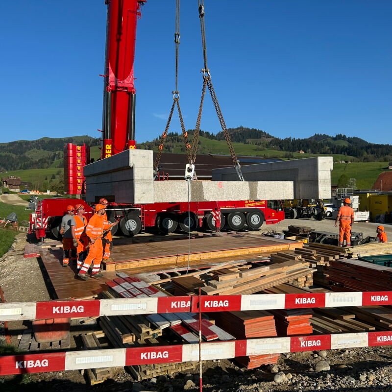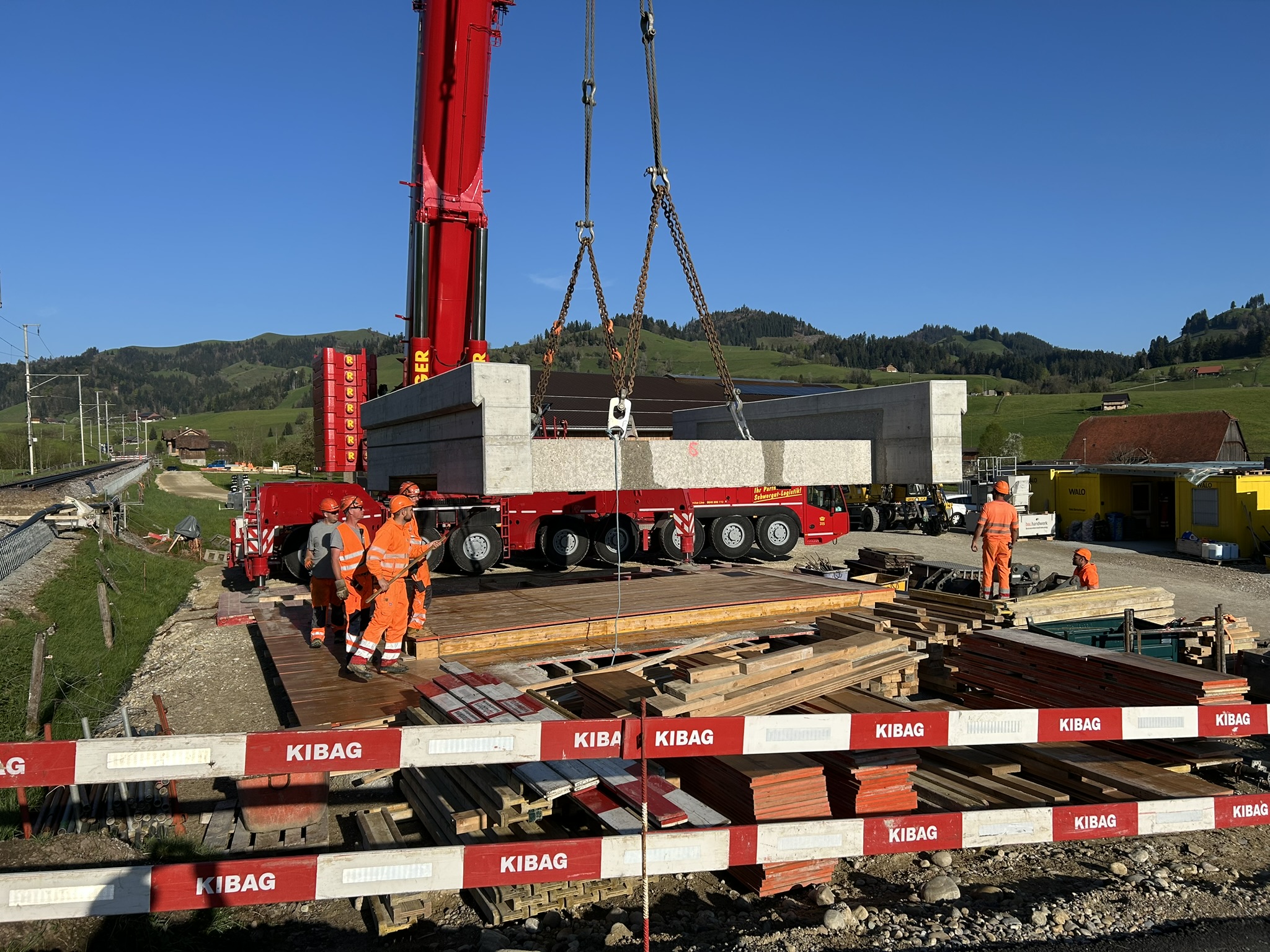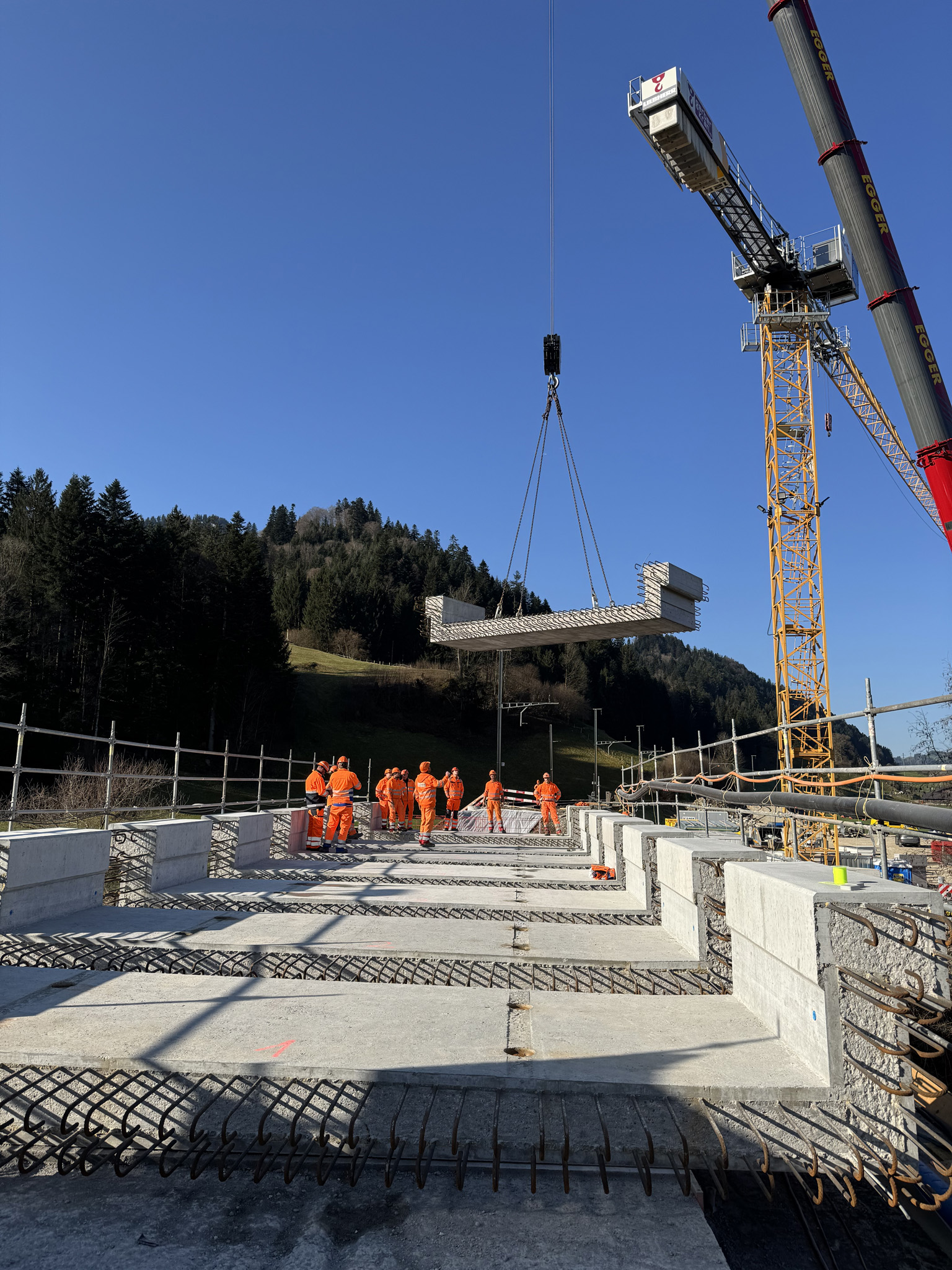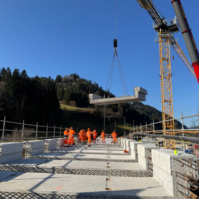 - Zwei WIB-Brücken (einbetonierte Walzträger) in zwei Stücken eingehoben und mit Ortbeton verbunden