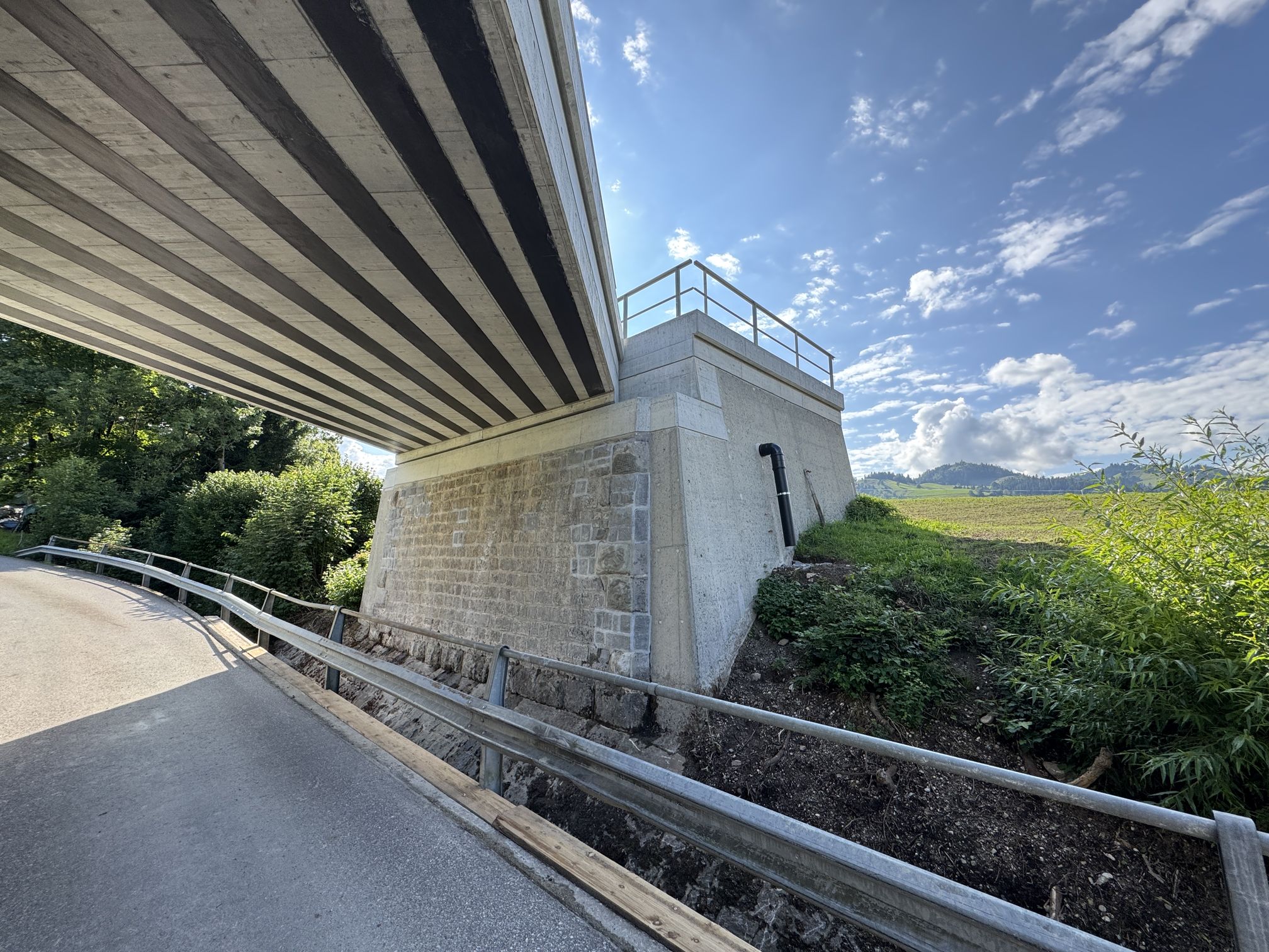Die Realisierung erfolgte in einer 4-monatigen Totalsperre, während dessen die Fahrbahn in einem Drei-Schicht-Betrieb erneuert wurde. Die Kunstbauten wurden innerhalb 6 Wochen realisiert. Dazu wurden vorgängig die Überbauten seitlich vorgefertigt und danach mittels Pneukran eingehoben. Kurzbeschrieb der Kunstbauten: