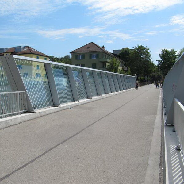 Architektonisch wird die Brücke sorgfältig in das übergeordnete Gestaltungskonzept des gesamten Abschnittes 4 eingebettet. Auf den angrenzenden Stützmauern werden transparente Lärmschutzwände aus Stahl und Glas gebaut. Diese werden auf den Brüstungen des Birchstegs weitergeführt und dienen als Abtrennung zwischen dem Verkehrsraum auf der Brücke und dem Gleisraum. Die transparente Gestaltung der Verkehrsfläche erlaubt eine gute Einsicht in die gesamte untenliegende Gleisanlage.