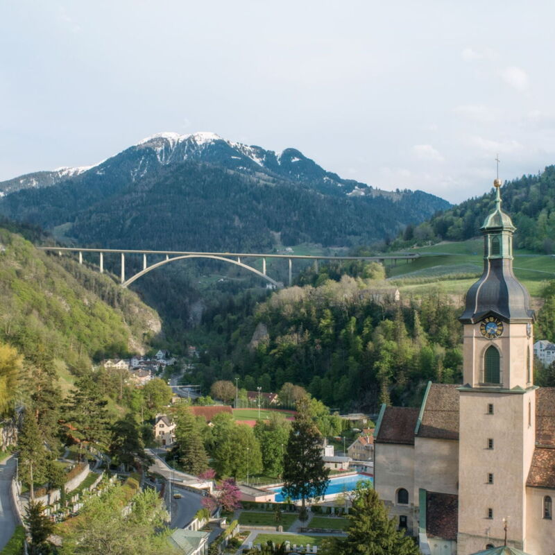 Für den neuen Anschluss an der Schanfiggerstrasse (Chur) wurde eine Bogenbrücke aus Beton mit einer Gesamtlänge von 542 m vorgeschlagen.