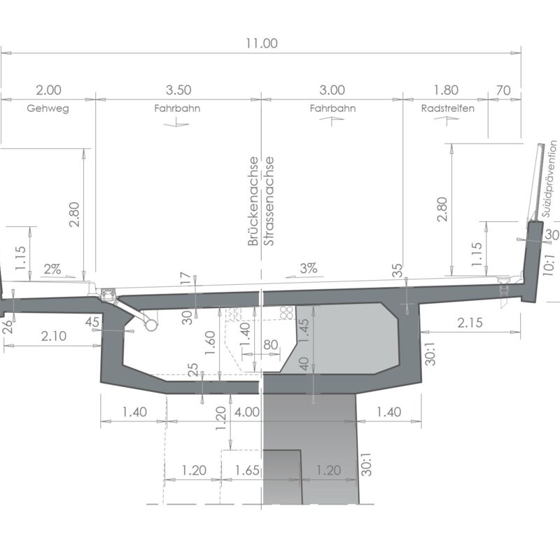 Höhe Hohlkastenquerschnitt: 2.15 m