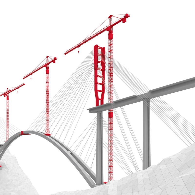 Stabilität in Querrichtung. Der Brückenträger läuft mit konstantem Querschnitt und identischen Spannweiten von 40 m durch. Dies schafft einen regelmässigen Rhythmus über die Gesamtlänge. Der Bogen wird, ausgehend von beiden Talflanken, im Freivorbau