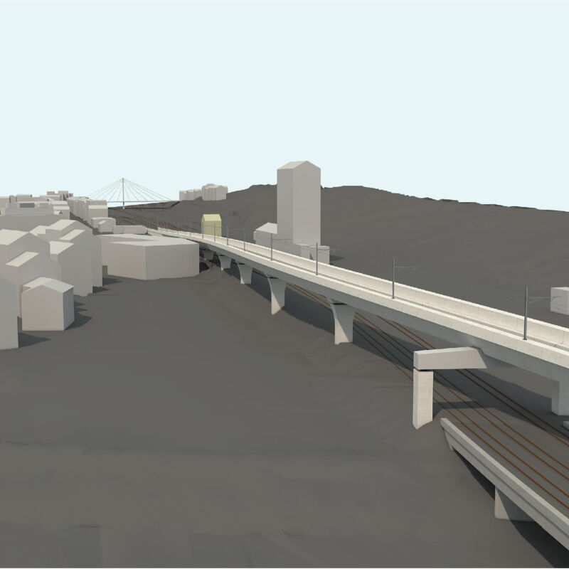- Neubau Brücke Töss: Dreifeldträger mit Gesamtlänge von 71m für drei Gleise.