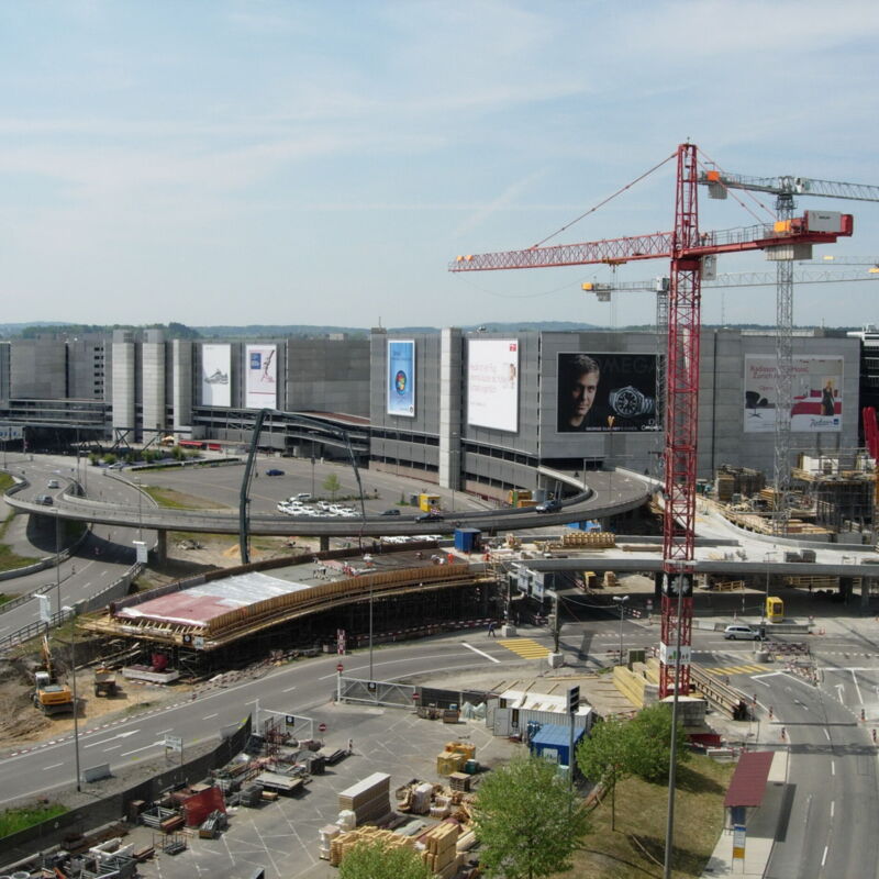 Neubau des landseitigen Verkehrsanschlusses im Rahmen der 5. Ausbauetappe mit umfangreichen Strassen-/Tiefbauarbeiten sowie zahlreichen Brücken und weiteren Kunstbauten.