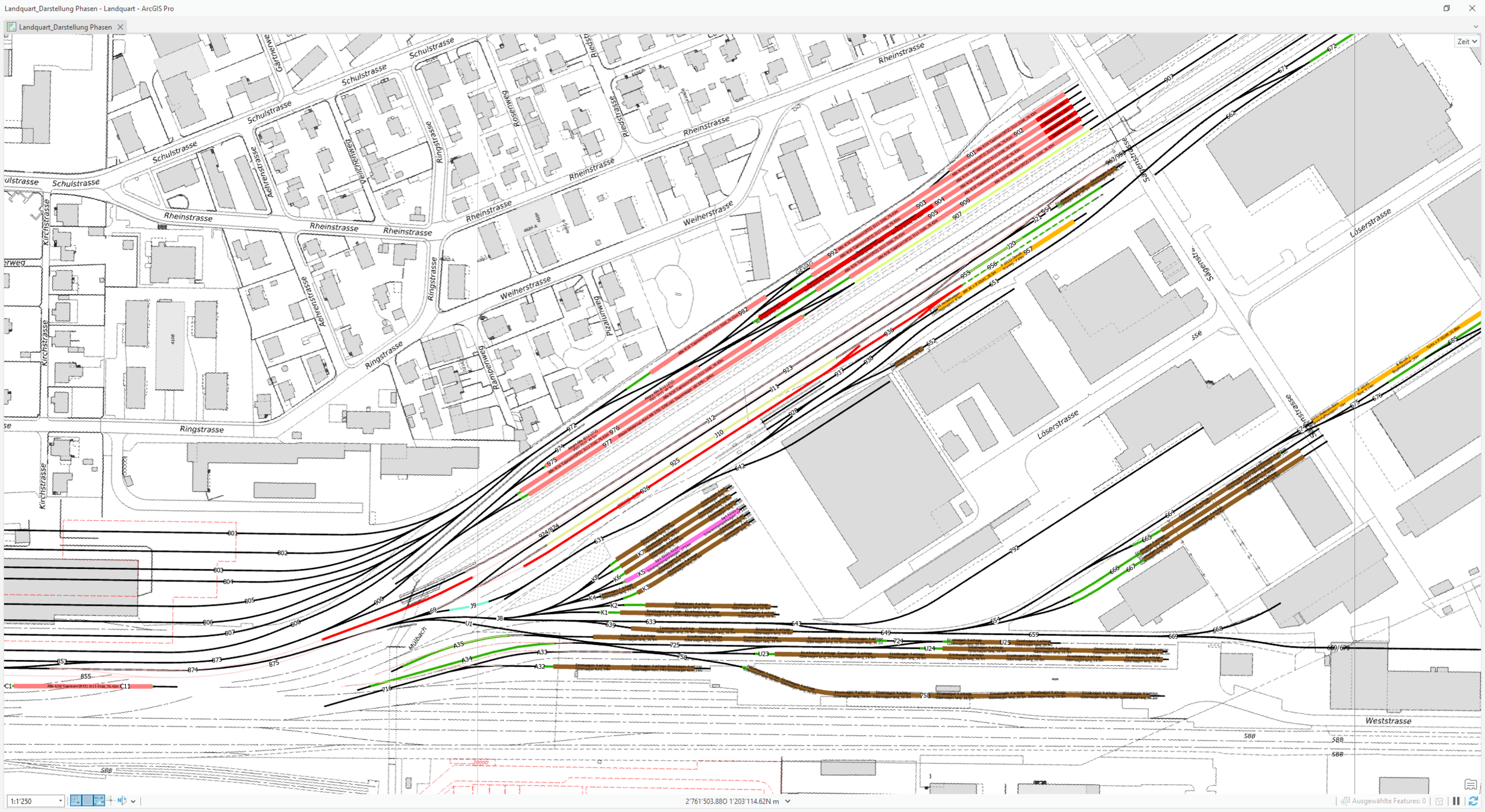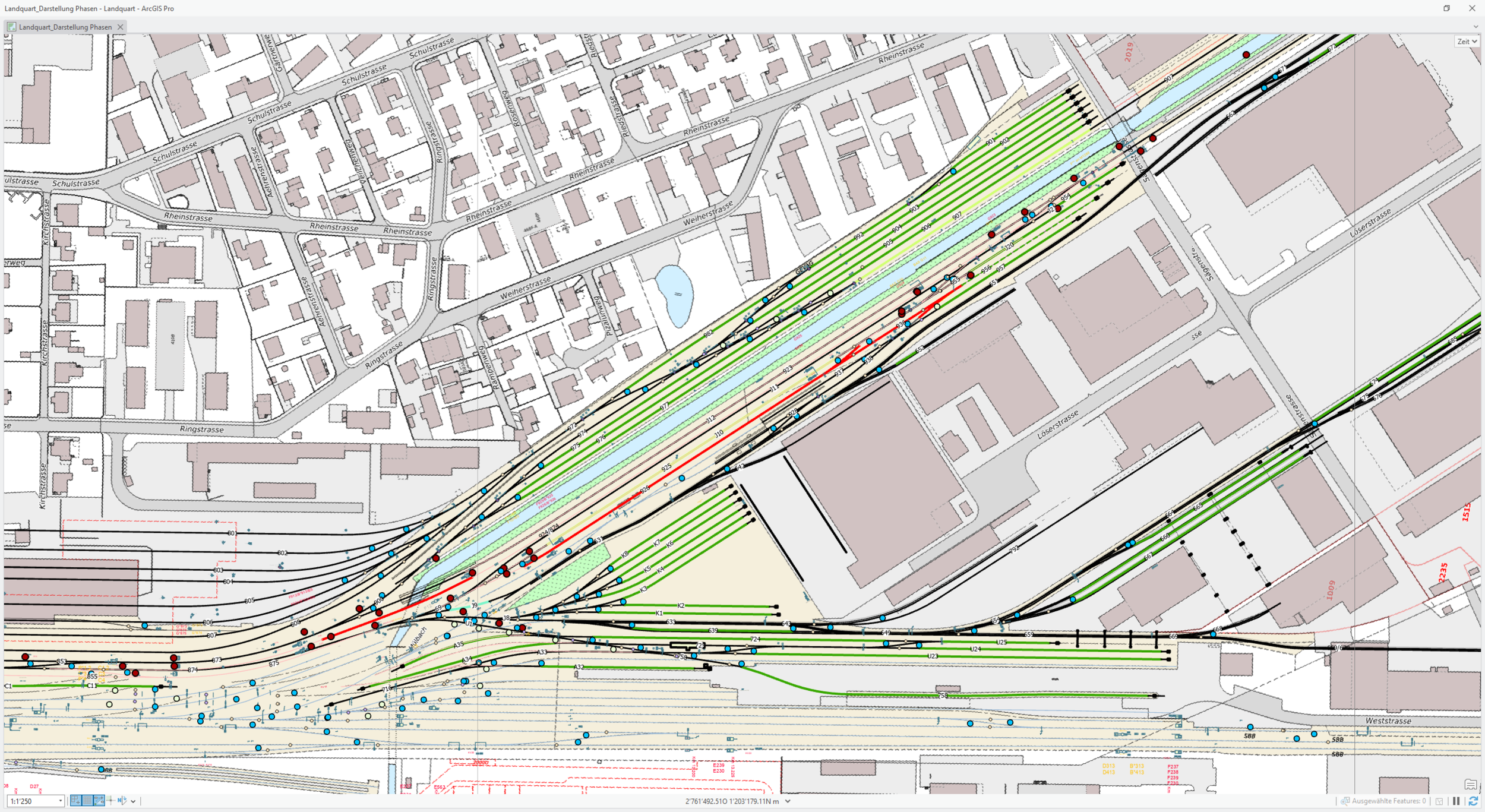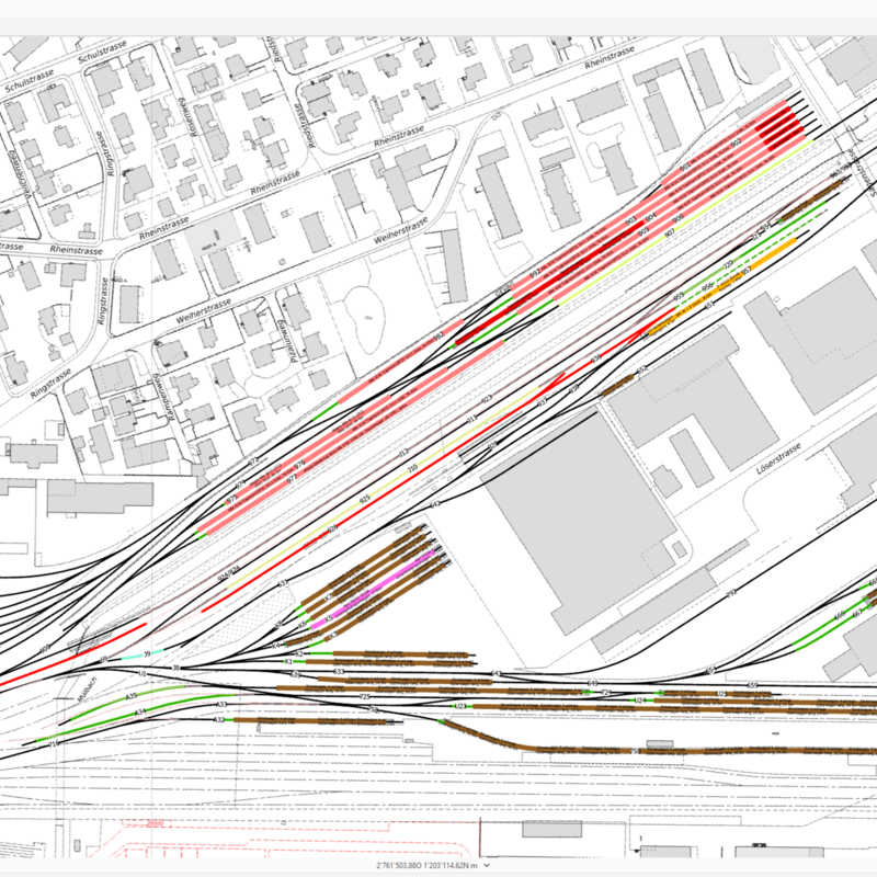 Um den reibungslosen Betriebsablauf sicherzustellen, wurde die dsp Ingenieure + Planer AG beauftragt, die Abstellkapazitäten für die unterschiedlichen Bauzustände in den Jahren 2024 bis 2032 detailliert zu untersuchen und zu dokumentieren. Dabei werden Topologiepläne ergänzt, Bauphasenabläufe analysiert und die Differenz zwischen der vorhandenen Gleiskapazität und dem effektiven Abstellbedarf aufgezeigt. Für Bauphasen mit besonders grossen Auswirkungen werden zusätzliche Auswertungen erstellt.