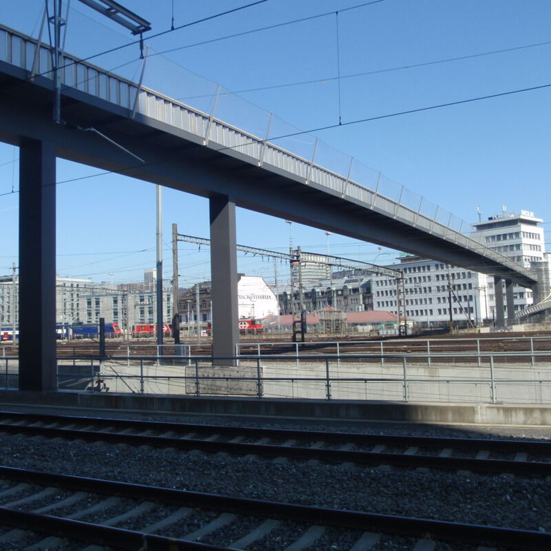 Der Negrellisteg verbindet zwei Stadtteile über das Gleisfeld der SBB vor dem Hauptbahnhof Zürich. Zudem hat der Steg auch eine Bedeutung als Landmarke und Aussichtspunkt im Gleisfeld. Die Umgebung stellt hohe technische und gestalterische Erwartungen an das Bauwerk. Um die finanziellen Vorgaben der Bauherrschaft einhalten zu können, ist die Wirtschaftlichkeit des Projekts von zentraler Bedeutung. Die rund 160 m lange Stahlbrücke überquert das Gleisfeld mit Spannweiten von 26-11-78-11-35 m (Randfelder bis Auflager bei Lifttürmen ohne Länge der Treppen-aufgänge) in einer Höhe von rund 8.40 m über den Gleisen.